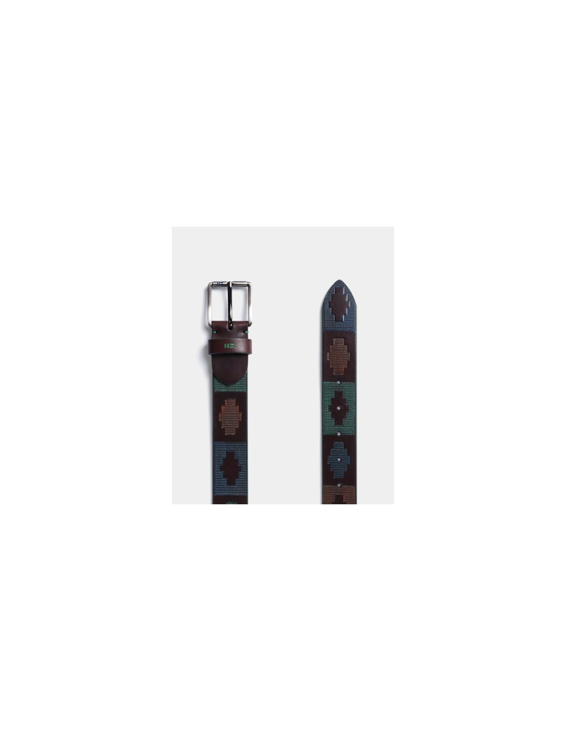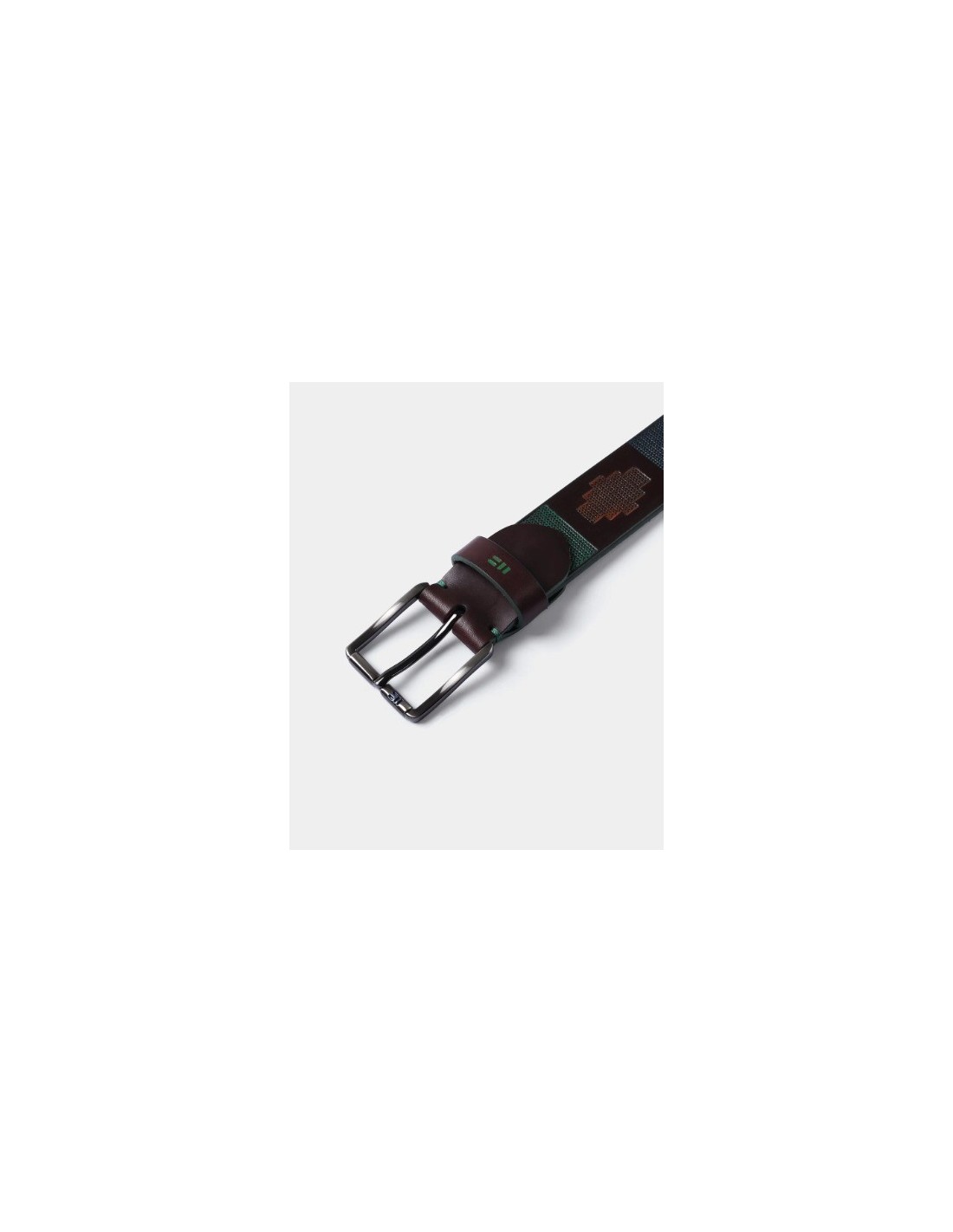 Cinturón sport elaborado en piel de vacuno, grabado y pintado a mano. Hebilla clásica sencilla en acabado negro satinado. Incluye sistema fácil de corte para adaptar a la medida deseada.